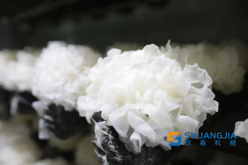 近日,在福建省2025年食用菌科技创新推广联合体项目——“古田县银耳新品种‘福银雪耳’配套栽培技术及深加工产品研究与推广”现场测产观摩会上,采用新技术种植的“福银雪耳”单袋鲜菇平均产量高达523.8克,展现出显著的增产潜力。同时,“福银雪耳”色泽洁白、呈半透明状,质地柔软且富有弹性;朵型圆整松散,形态酷似菊花,耳片舒展,边缘呈现精致的小锯齿状;其耳心硬度区域小,有效提升了耳片得率,品质优异。
